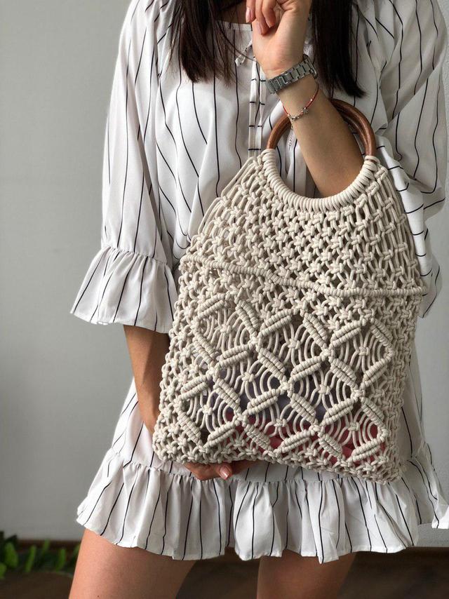 Стильна авоська з круглої бамбуковою ручкою - це не просто зручна річ, але і дуже трендовий аксесуар! Така легка, містка і практична, вона стане твоєю постійною супутницею і на пляжі, і в місті. Виконана авоська з щільного і дуже якісного матеріалу, а бамбукові ручки додають їй особливого шарму. В неї неможливо не закохатися!