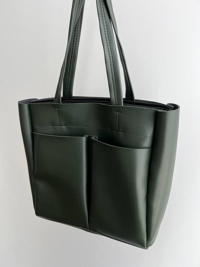 Сумка-шоппер середнього розміру, легка і містка, виконана з м'якої, приємної на дотик екошкіри. Додаткова опція зручності - дві великі зовнішні кишені. Ззаду - кармашок на блискавці. Всередині з боків є тканинна підкладка, дві потаємні кишені на блискавці і одна пришивна. Закривається сумка на блискавку. Сумка без декоративної фурнітури, що дозволяє поєднувати з будь-яким стилем і кольором аксесуарів.