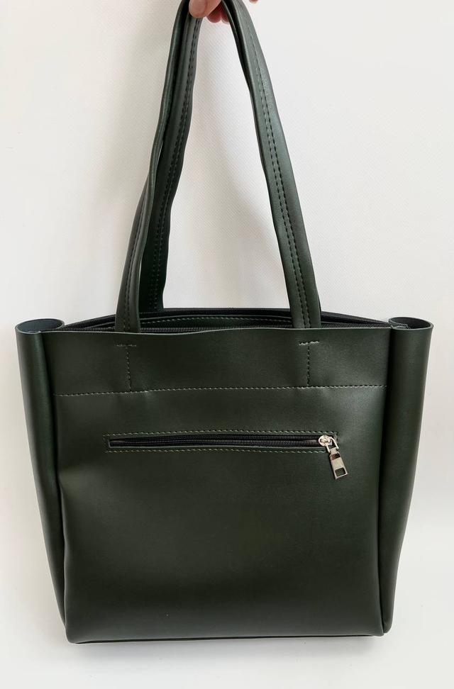Жіноча сумка шоппер на блискавці зеленого кольору