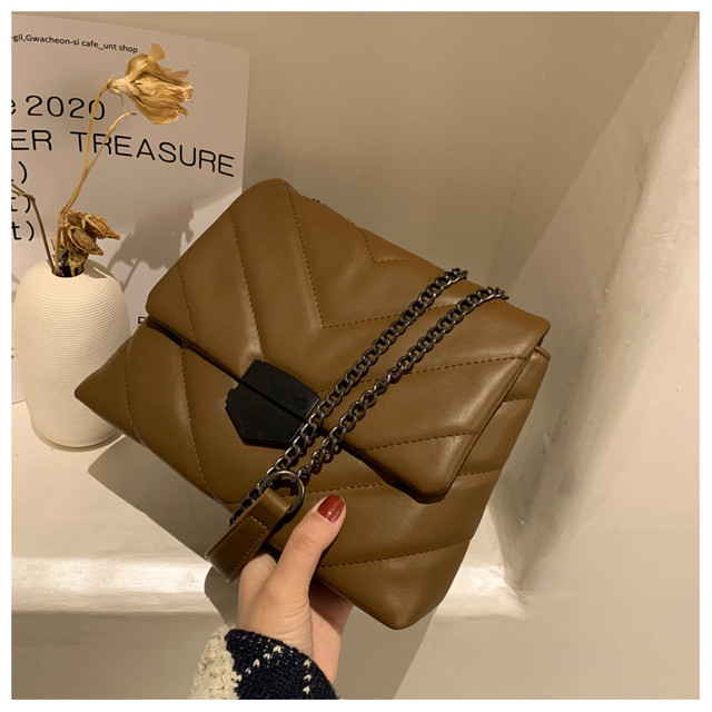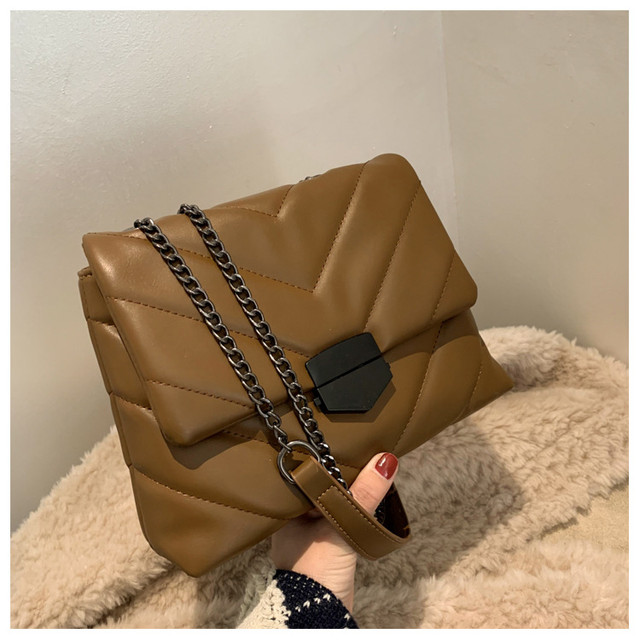 Жіноча стьобана сумочка на ланцюжку коричневого кольору з екошкіри. Всередині одне відділення і кишеня на блискавці, є підкладка. Закривається сумочка на металеву застібку. Є ручка для носіння на плечі, також можна носити як клатч. М'яка, приємна на дотик екошкіра.
