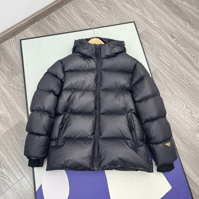 Пуховик застібається по всій довжині на пластикову односторонню блискавку. Комір дутий, високий. Рукав ушивний закінчується трикотажним манжетом з отвором для великого пальця. З боків куртки дві вертикальні кишені на блискавці. Рукав куртки прикрашений логотипом.