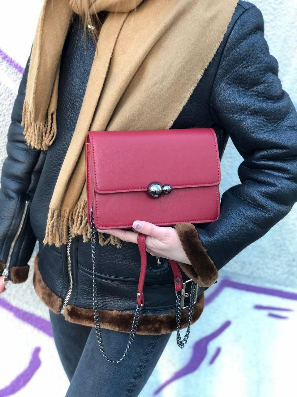 Шкіряна сумочка на ланцюжку маленька червона